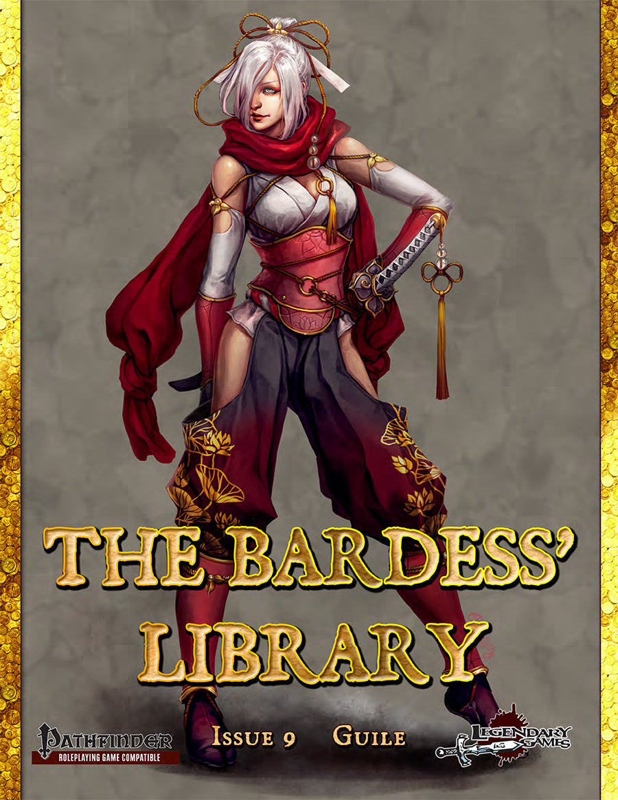 The Bardess’ Library is an anthology of material from Margherita “Bardess” Tramontano, with fantastic expansions for your Pathfinder First Edition campaign! Every issue of the Library has a different theme. This month’s theme is Guile! Inside, you will find: