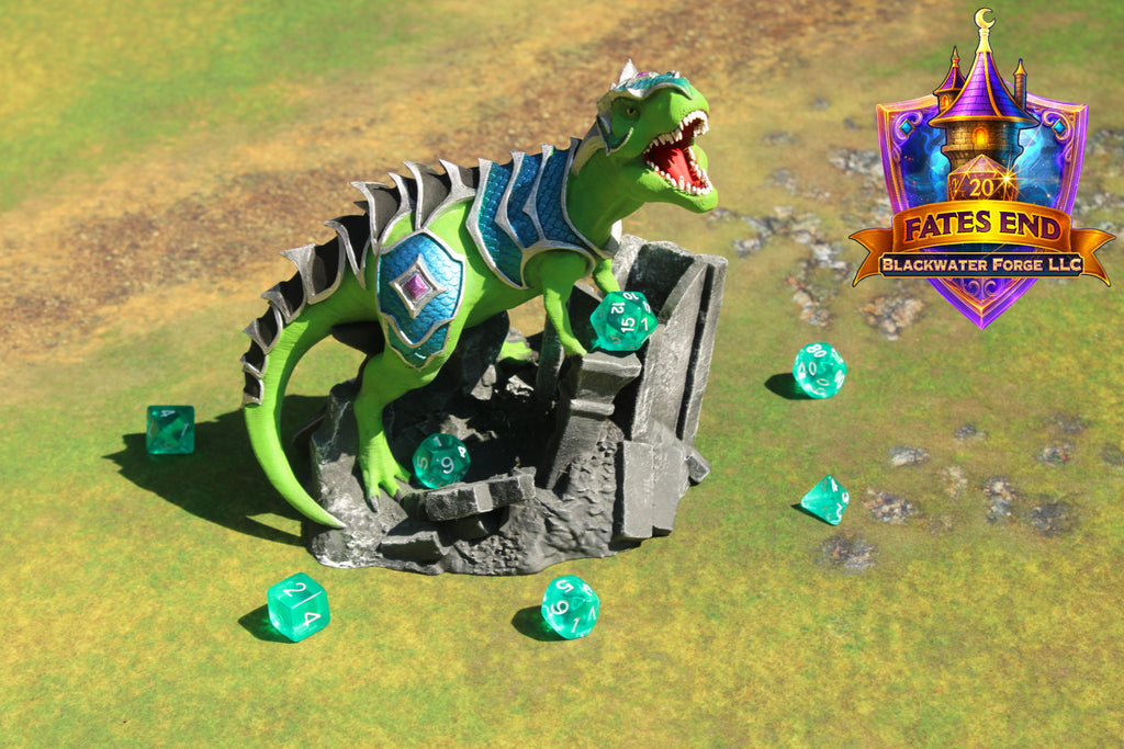 Armored War T-Rex 3D Printed Dice Tower – Fate's End Collection by Kim Bolt - Unleash Prehistoric Power!