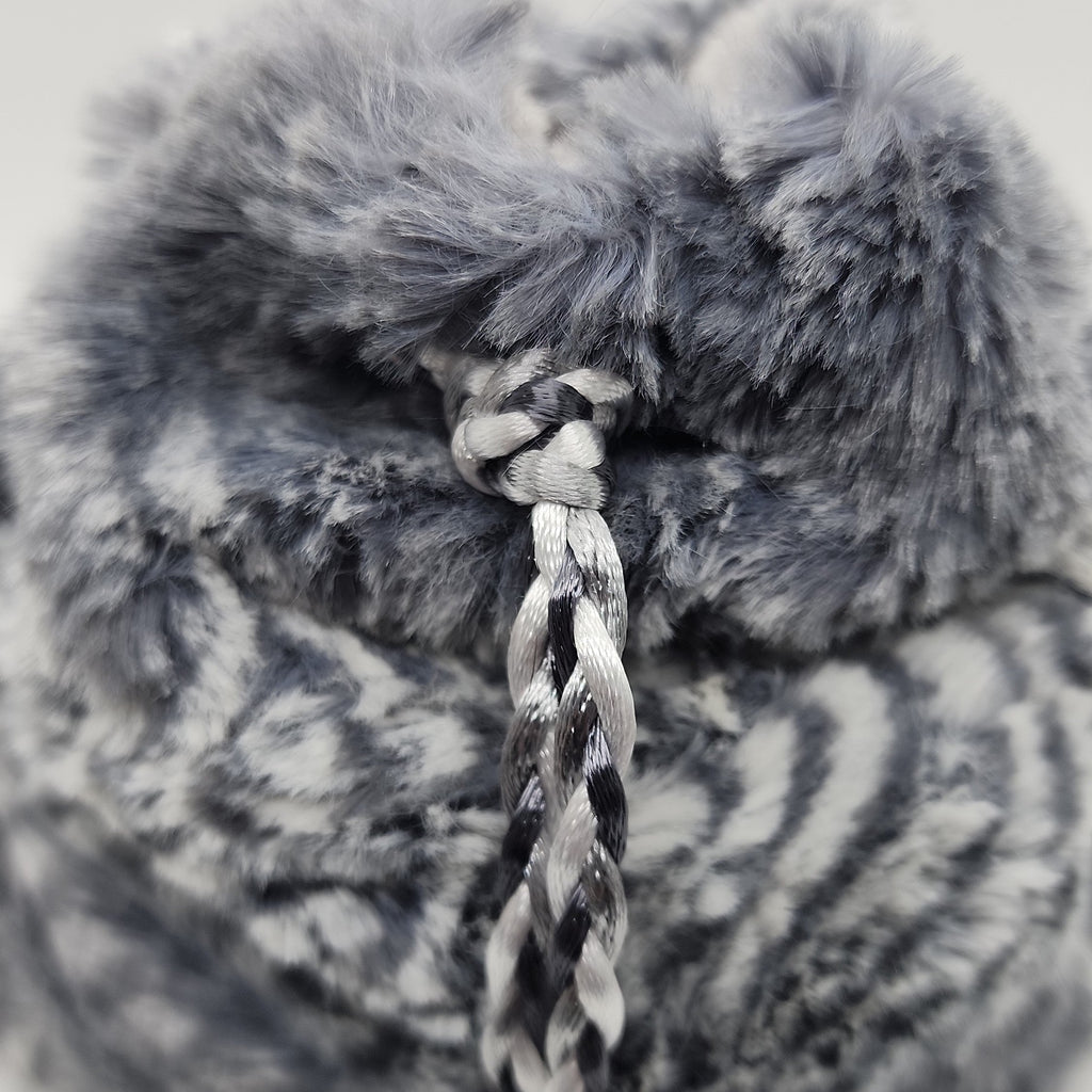 Chilling Rakshasa has a hand braided light gray and white minky exterior with a light gray minky interior lining to keep your dice safe from any other weaker creatures. The satin rattail braid is a light mix of white, silver, and gray cording to keep your dice safely trapped....wait we mean contained and away from other demons.
