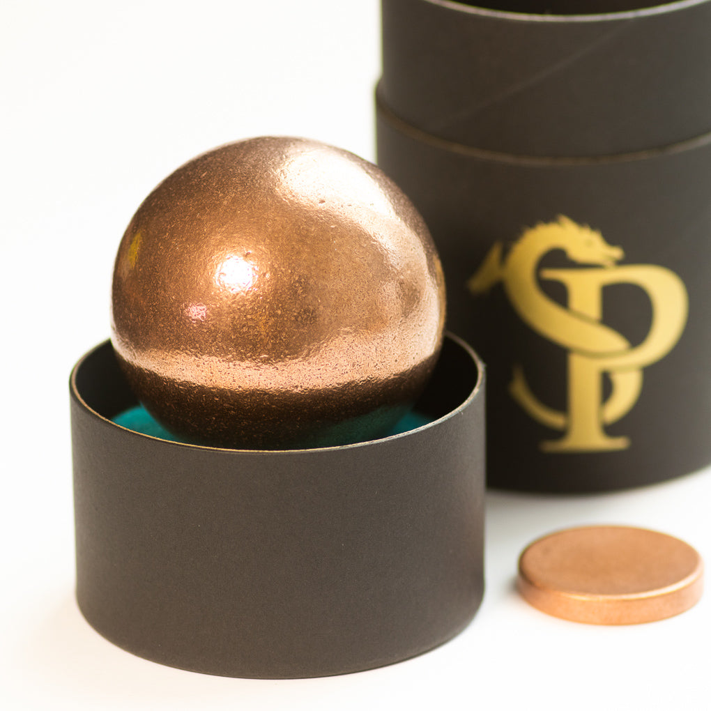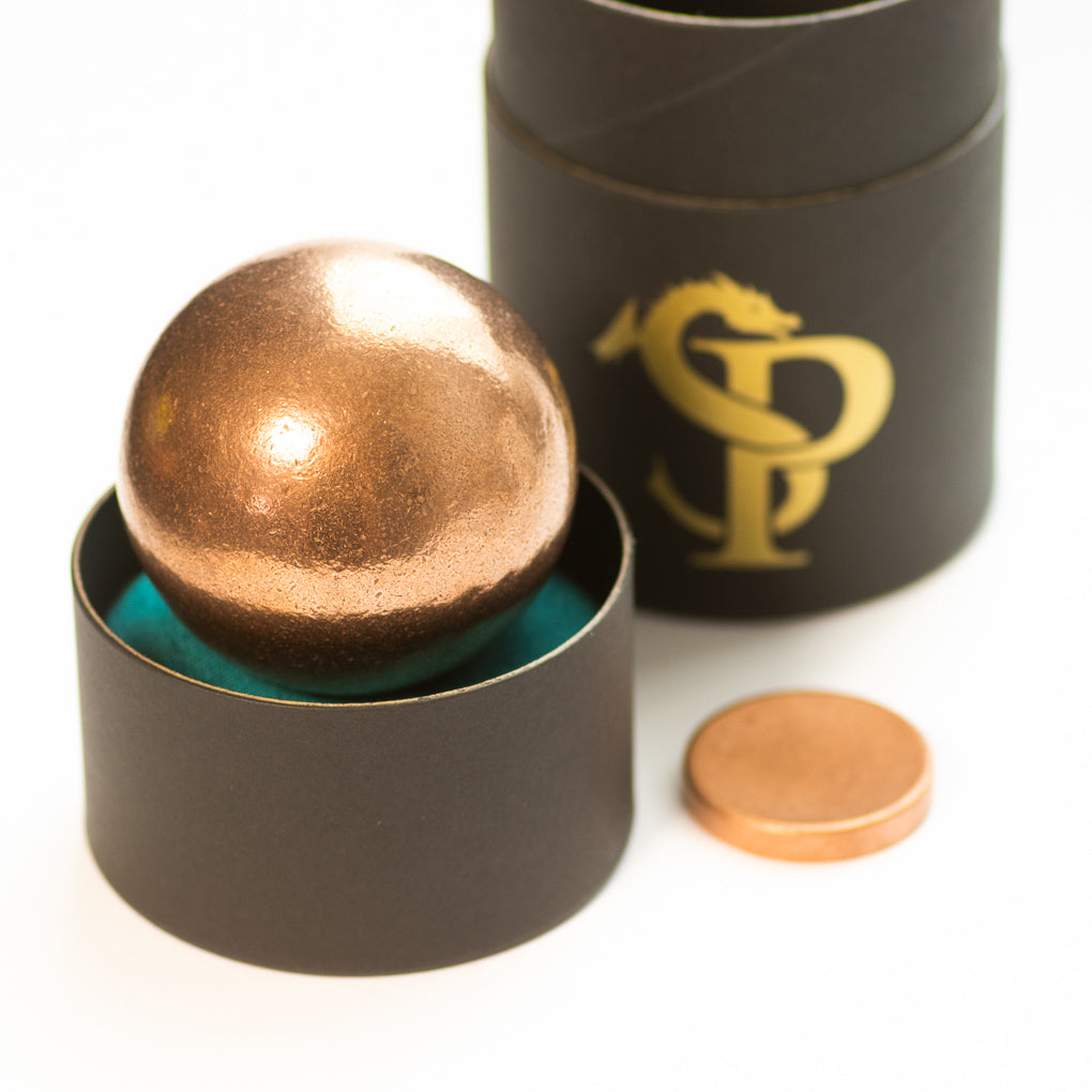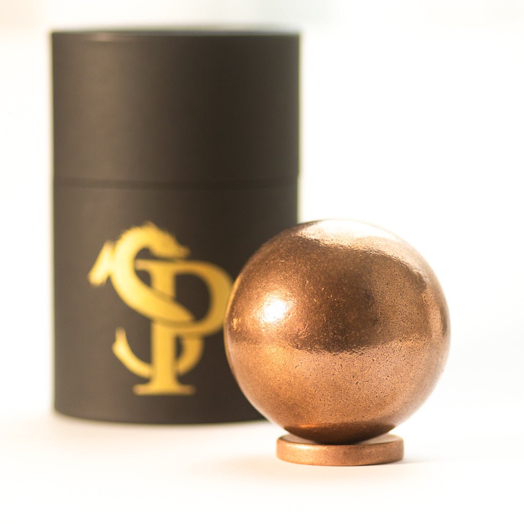 We cast these large Orbs in house using the pure copper left over from minting our coins. This process ensures copper purity as well as helps us to use our excess material. Once we use up our excess copper, these will go out of stock until we have enough material saved to make another batch.