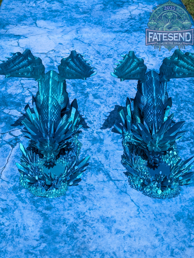 Crystal Ice Dragon Book End Set- Fate's End Collection by Kim Bolt - Fantasy Decor - Frost-Bound Guardians for your Favorite Tomes!