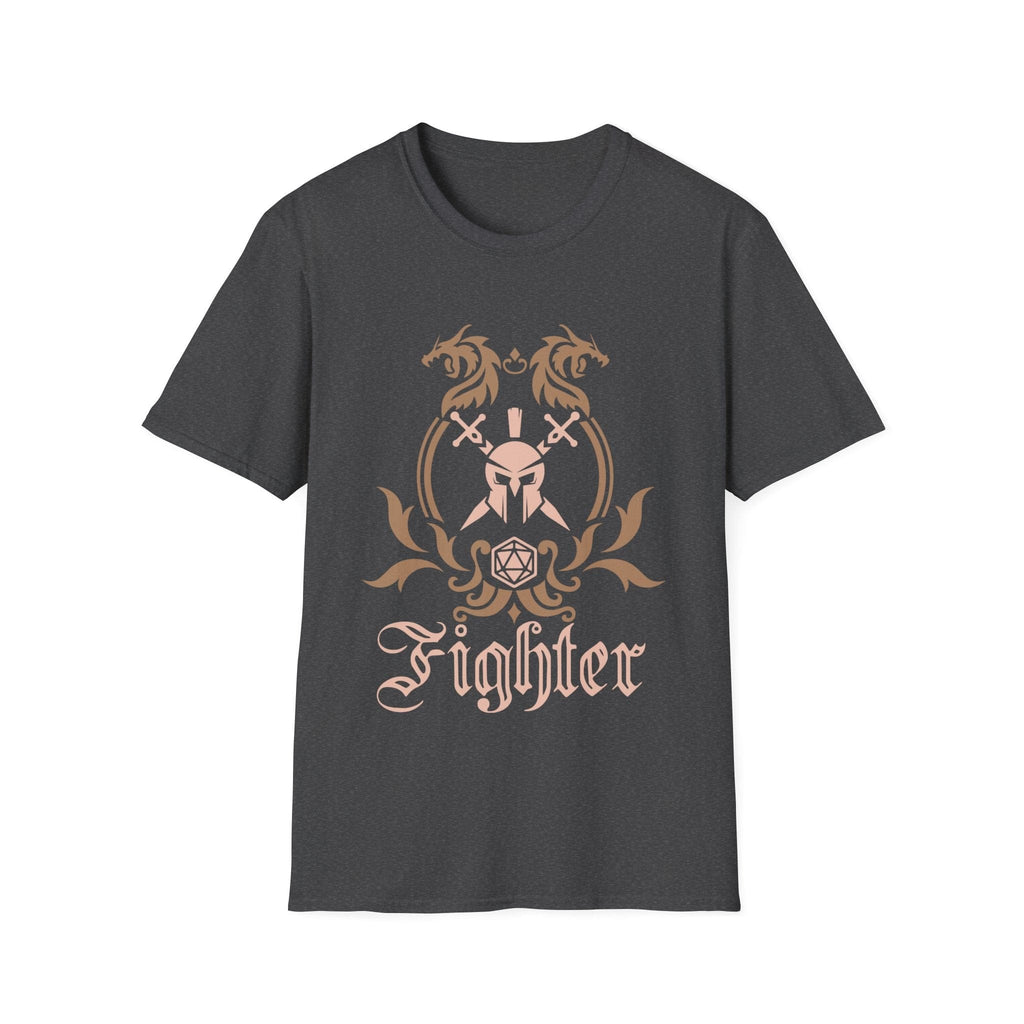 This shirt is a must-have for any D&D fan! Show off your fighter pride with the class emblem on this quirky t-shirt. Perfect for your next campaign or everyday wear. (Critical hit in style!)