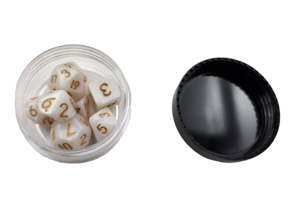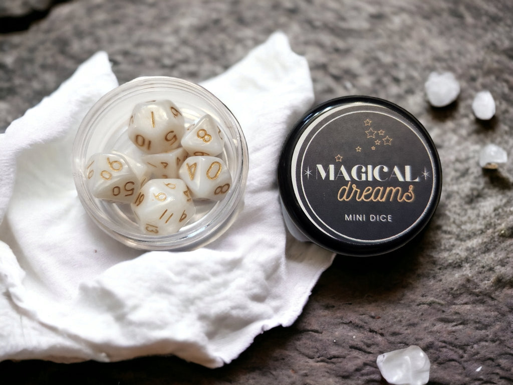 A set mini 10mm dice is a fun and perfect gift for any gamer. The white of a pure magical dream.