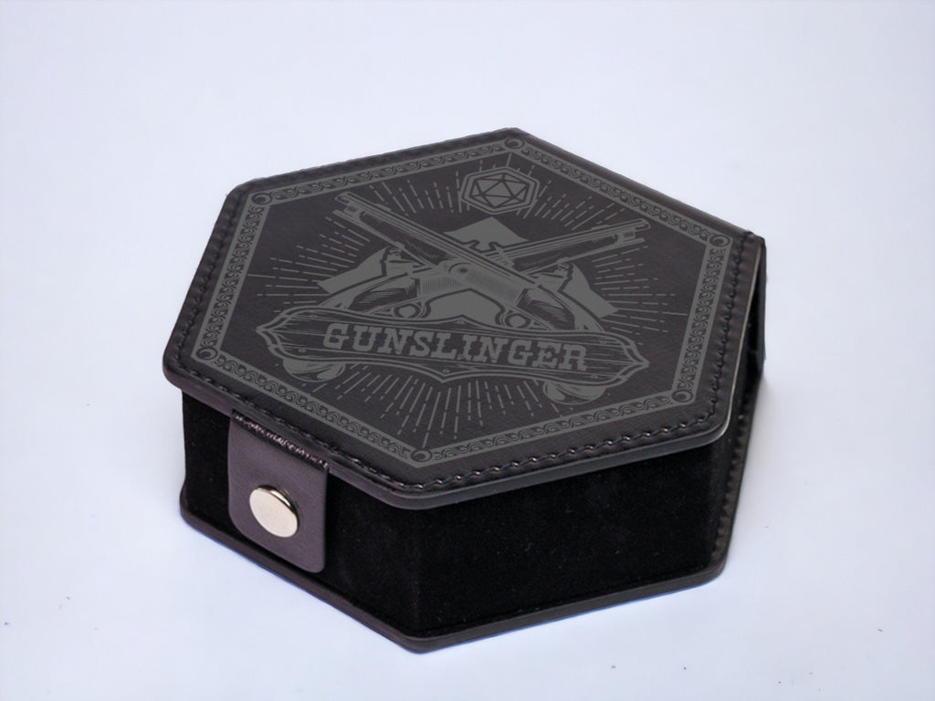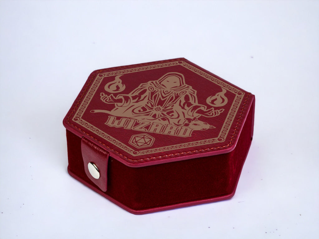 Roll with your class—literally. This hexagonal faux leather dice vault is designed to hold a full 7-piece RPG dice set while repping your favorite class loud and proud. Choose from a selection of official DnD class-inspired engravings, laser-etched into the sleek faux leather lid for a bold, battle-ready finish.
