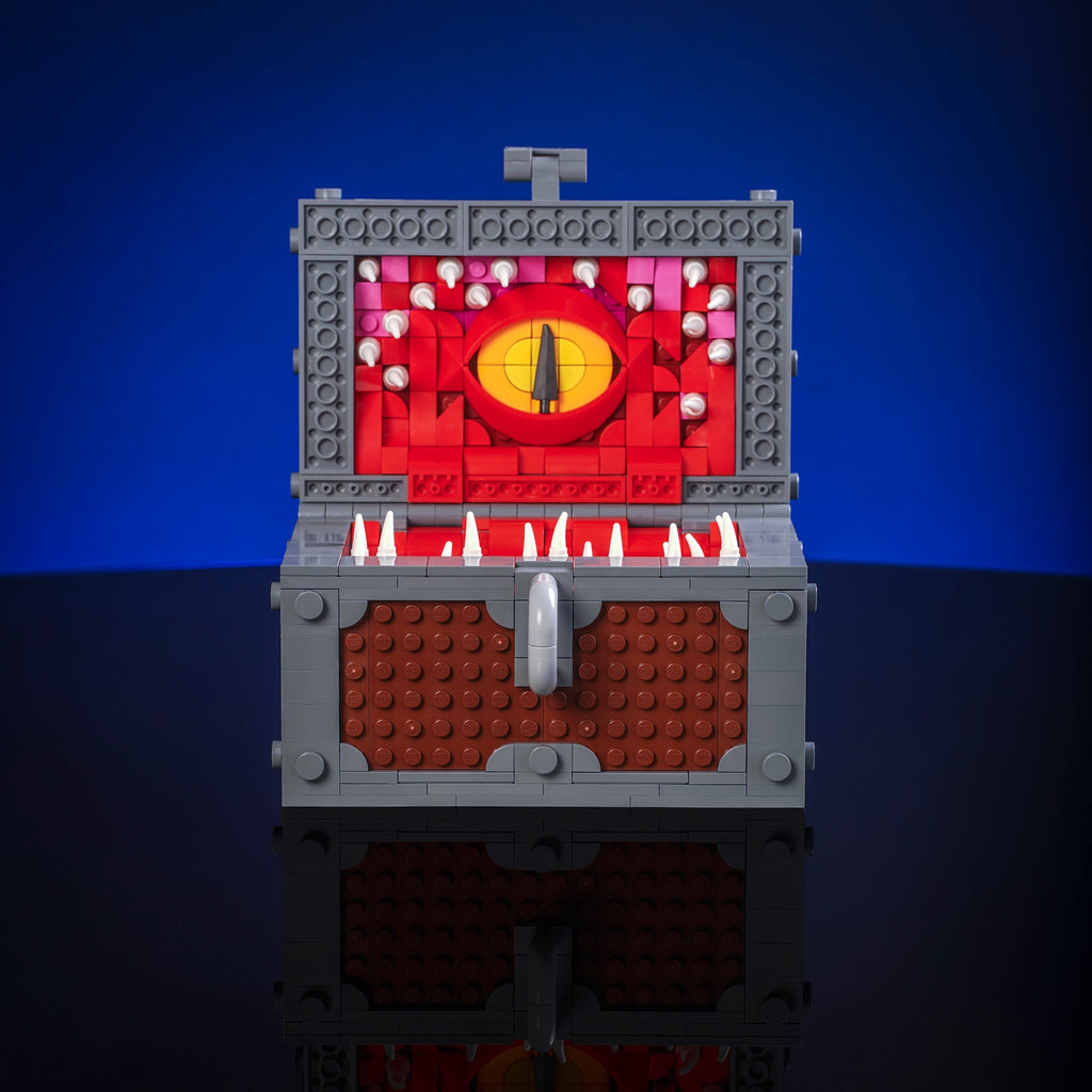 Unlock the Mimic Chest, if you dare! Seemingly unassuming on the outside, this model is able to house a monster that will gobble anything in sight, with enough space to hold your special dice for your favorite board and roleplay games! With a working lock, latch, and opening mechanism, this 817 piece model’s techniques and build experience will dazzle you from start to finish!
