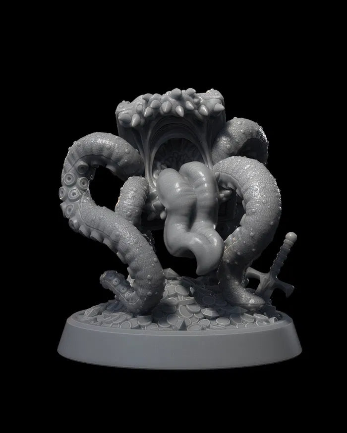 This Mimic Chest miniature, designed for RPGs like Dungeons and Dragons and Pathfinder, transforms a typical treasure chest into a terrifying beast. With writhing tentacles and sharp fangs, this mimic is perfect for adding surprise and danger to any dungeon or treasure encounter.