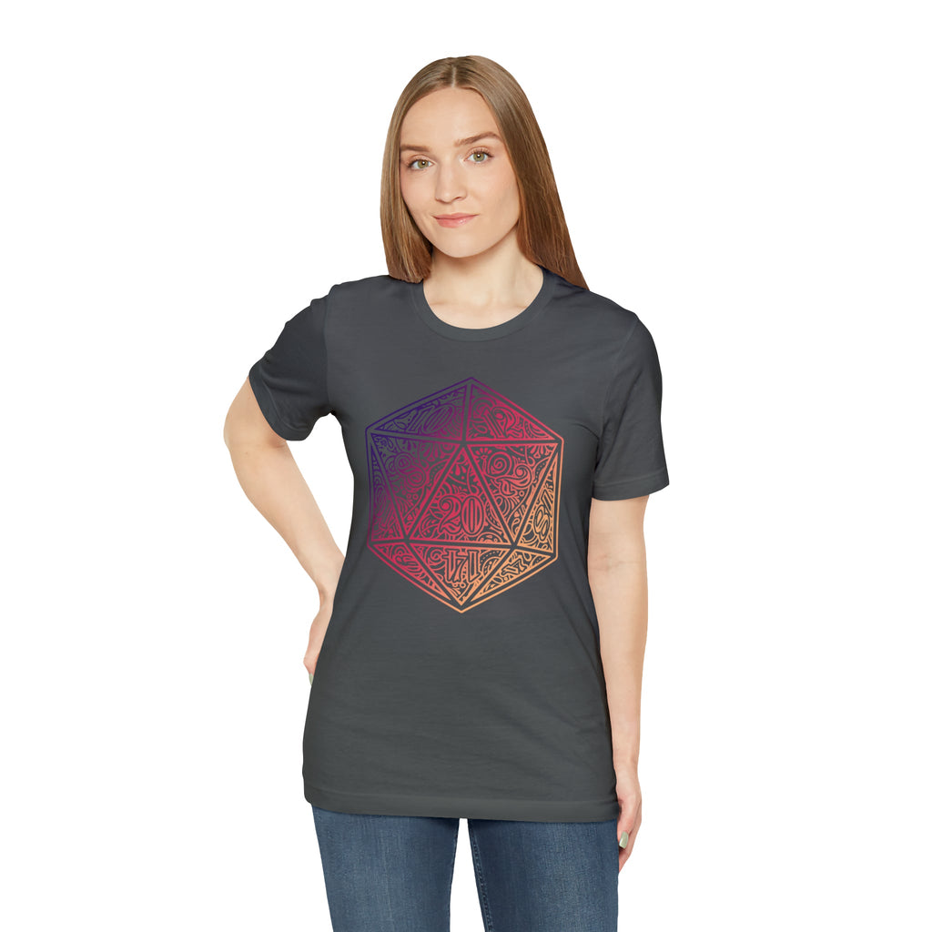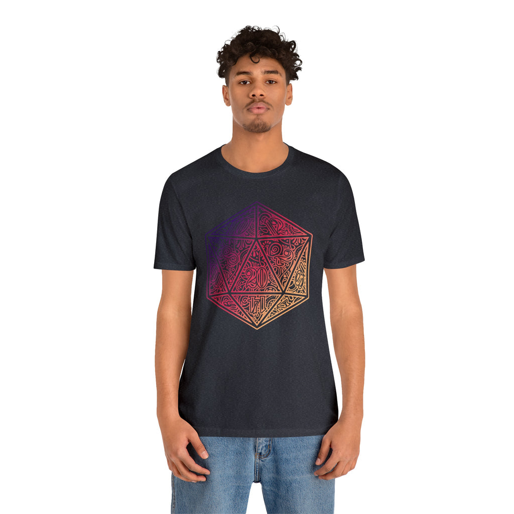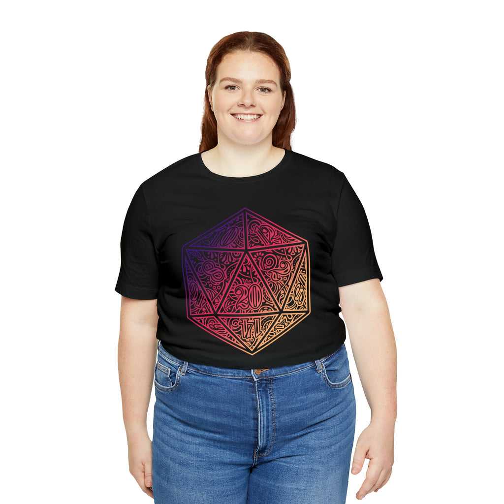 Elevate your adventures and make a statement with the "Dive into Dusk" Ombre Ornamental Dice Shirt. Let the wonders of imagination and the power of the d20 guide your destiny. Whether you're facing formidable foes or unlocking untold mysteries, this shirt shall be your steadfast companion through it all.