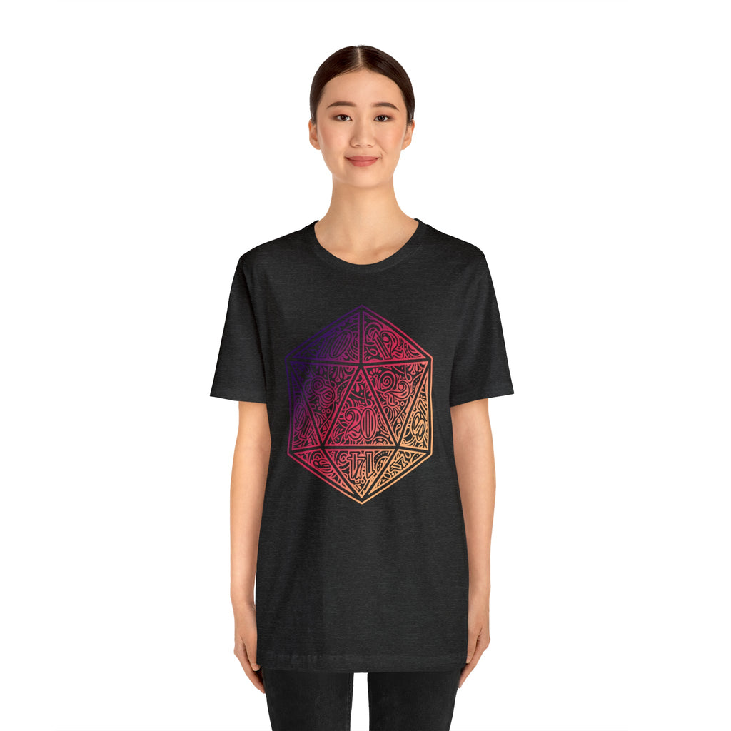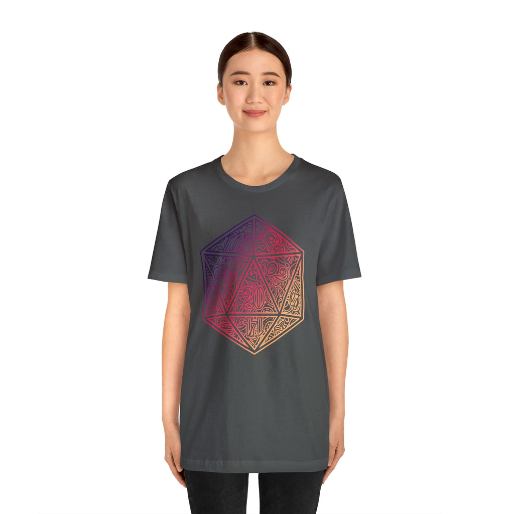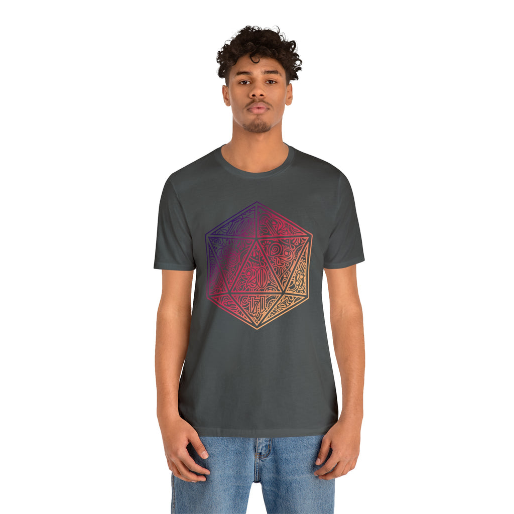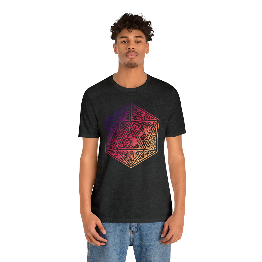 Elevate your adventures and make a statement with the "Dive into Dusk" Ombre Ornamental Dice Shirt. Let the wonders of imagination and the power of the d20 guide your destiny. Whether you're facing formidable foes or unlocking untold mysteries, this shirt shall be your steadfast companion through it all.
