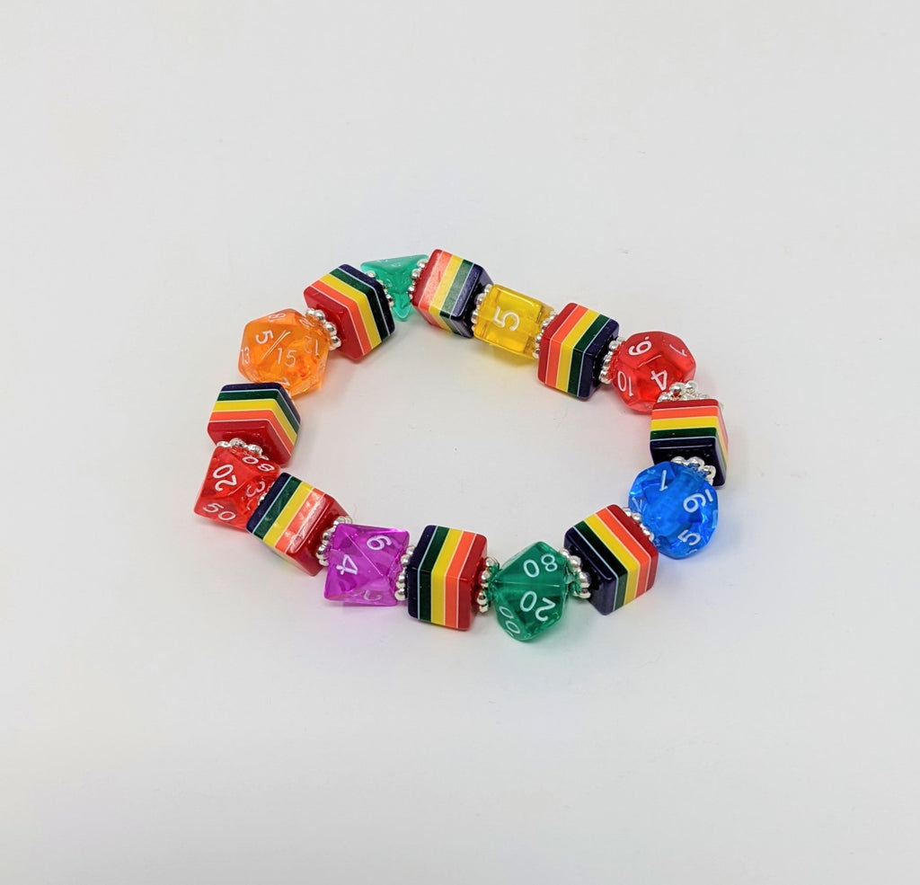 PRIDE Rainbow beads with Rainbow Dice Bracelet