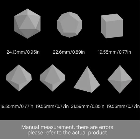 - Each set comes with a d4, d6, d8, d10, d%, d12, and d20.