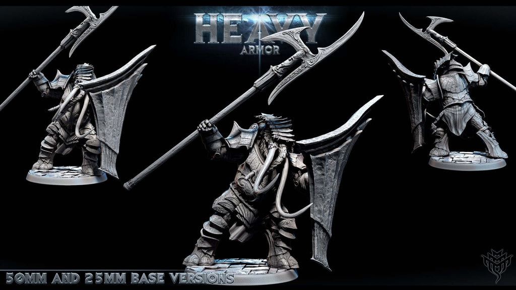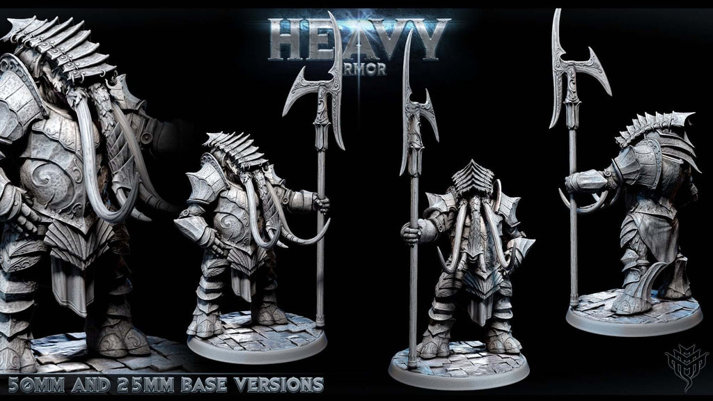 The Shrouded Tusks are formidable loxodon warriors armed with halberds and shields. Their impressive size and combat readiness, combined with their rugged armor, provide a strong and resilient presence in any D&D, Pathfinder, or Warhammer game.