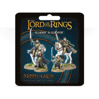 This set contains four metal miniatures – Elladan and Elrohir (both mounted and on foot) – supplied with two Citadel 25mm Round Bases and two Citadel 40mm Round Bases.