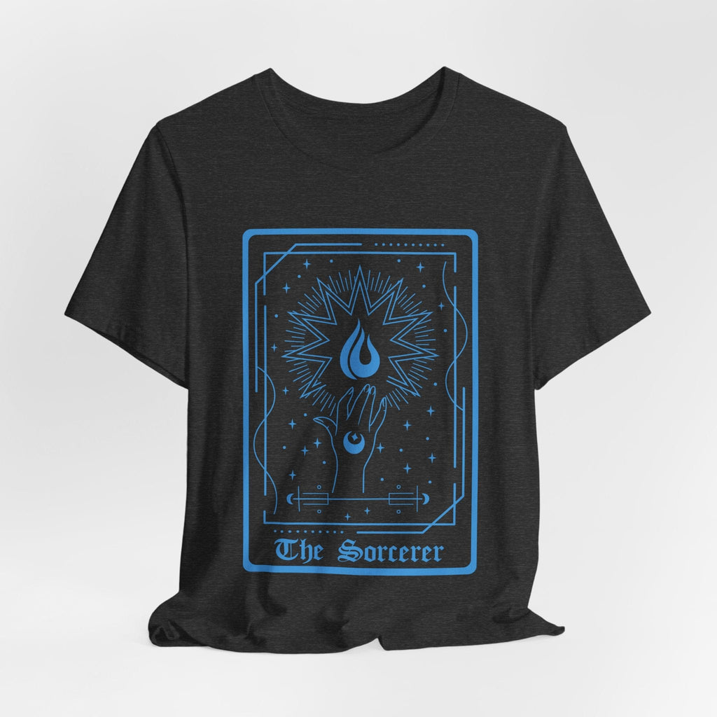 Unleash your innate magical power with 'The Sorcerer' tarot card t-shirt! Designed for Dungeons & Dragons players who command the arcane with effortless flair, this tee embodies the mystical and unpredictable spirit of the sorcerer class.
