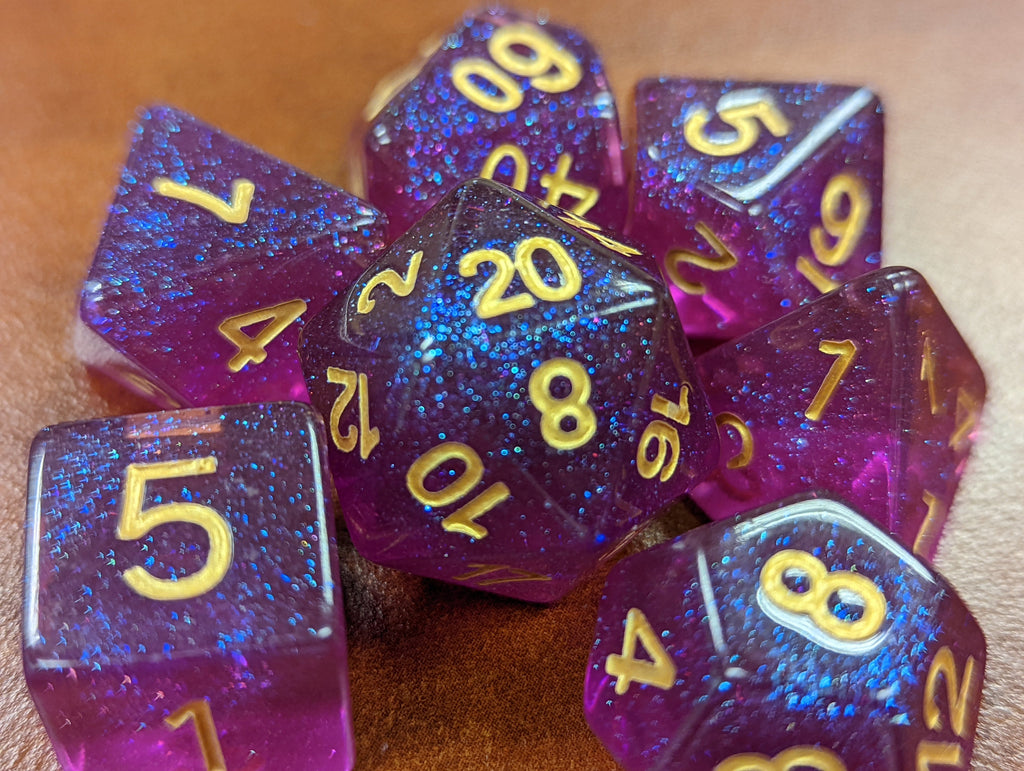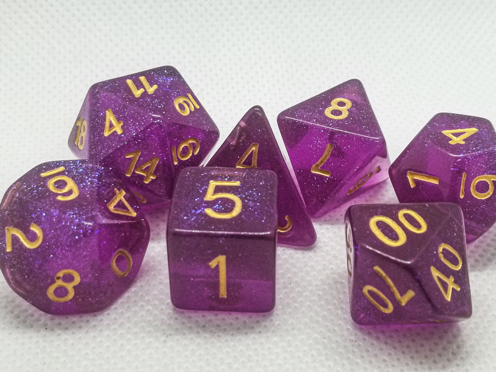 Time Walker | Purple w/Gold Glitter 7-Dice Set RPG Dice Set
