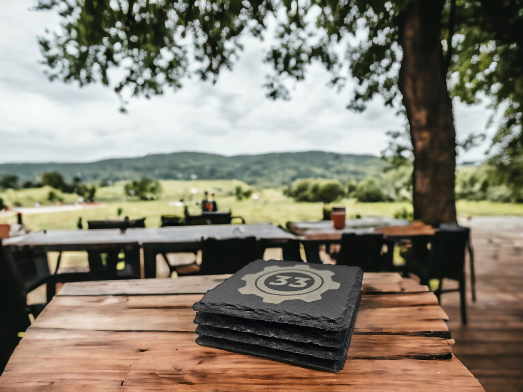 Declare your loyalty with every sip. This 4-piece engraved slate coaster set showcases the bold insignias of Fallout’s most iconic factions: Raiders, Brotherhood of Steel, Vault-Tec, and Enclave. Built for life in (or out of) the vault.