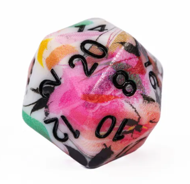 - Resin dice set featuring an array of colors in a graffiti style.
