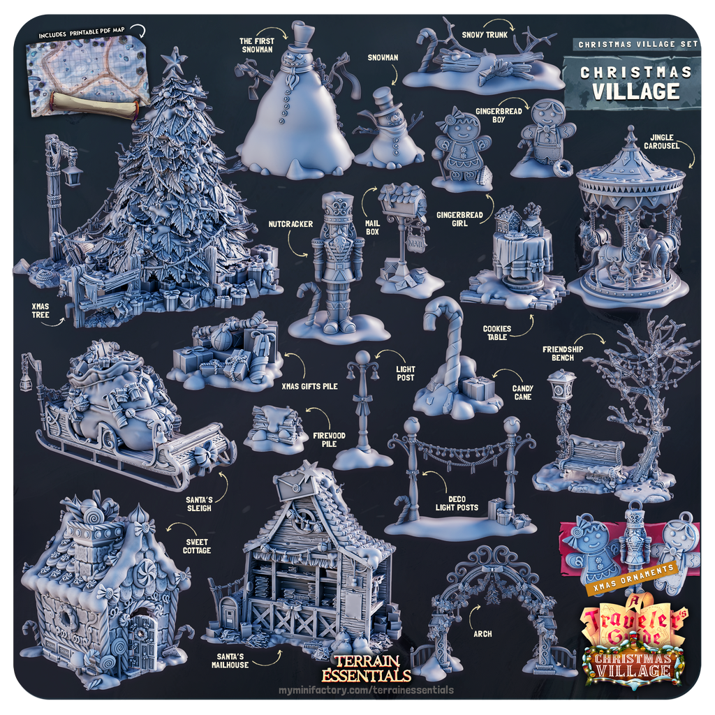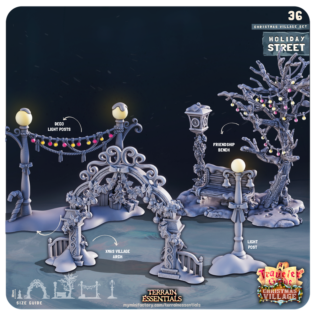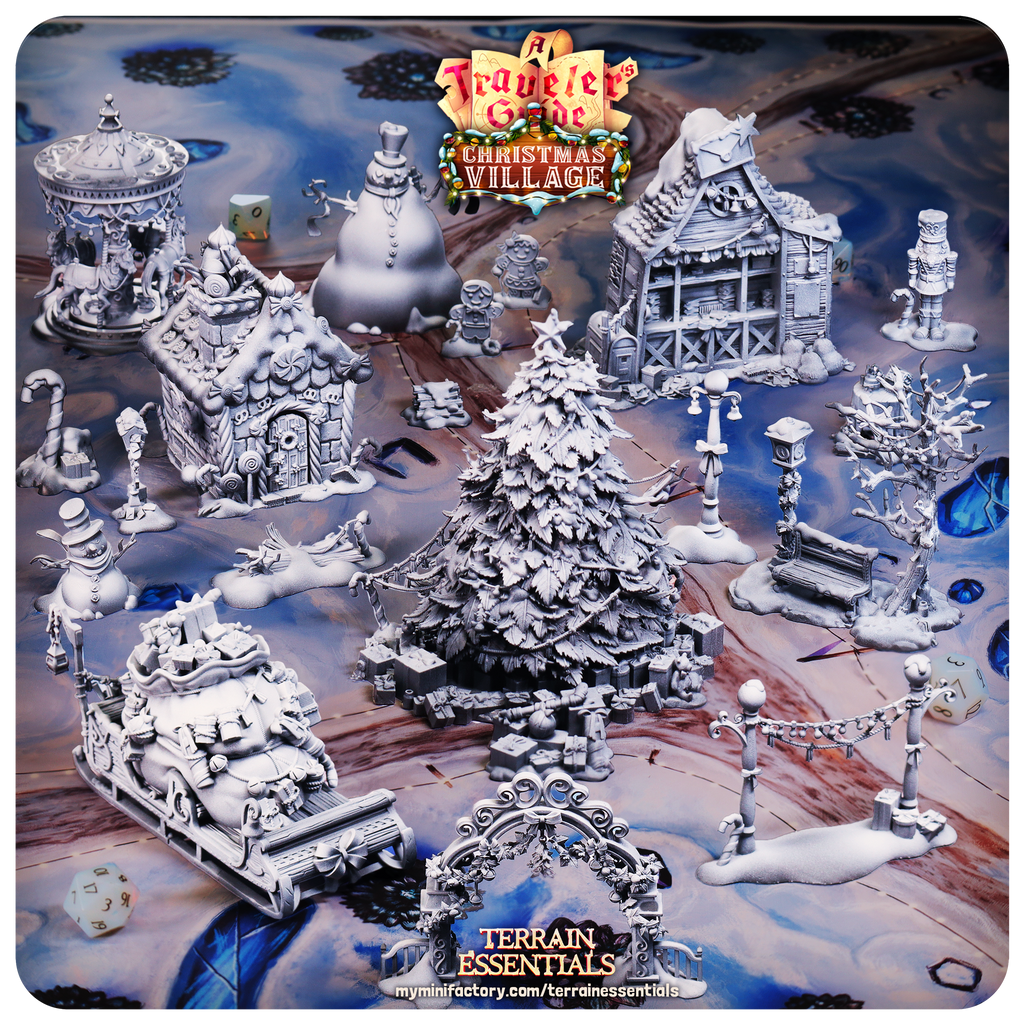 3D Printed Cast n Play Christmas Village Terrain Set 28mm 32mm D&D