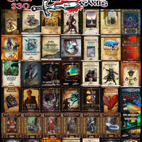 It's a great time to get a taste of all the incredible Pathfinder Roleplaying Game product lines Legendary Games has to offer, from fairy forests to Egyptian ruins, Gothic horror to high seas pirate adventure, and even venturing to the stars and beyond! Save over 90% on an array of adventures and accessories, bringing you adventures ranging from 1st level to 9th level, monsters from CR 1 to CR 21, magic items from common everyday treasures to mighty artifacts, ready-to-use creatures and characters, and much, much more, all with amazing artwork, delightful design, and flat-out Pathfinder fun! That's nearly 1500 pages of content for only $30!