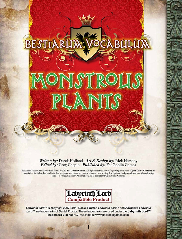 Bestiarum Vocabulum: Monstrous Plants provides you with detailed accounts of a variety of deadly vegetation for your next encounter.