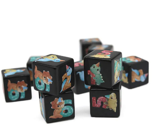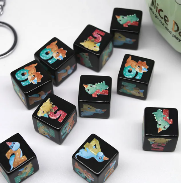 - Adorable Dinosaur Designs: Each die features charming illustrations of different dinosaurs, perfect for dinosaur enthusiasts and young gamers alike.