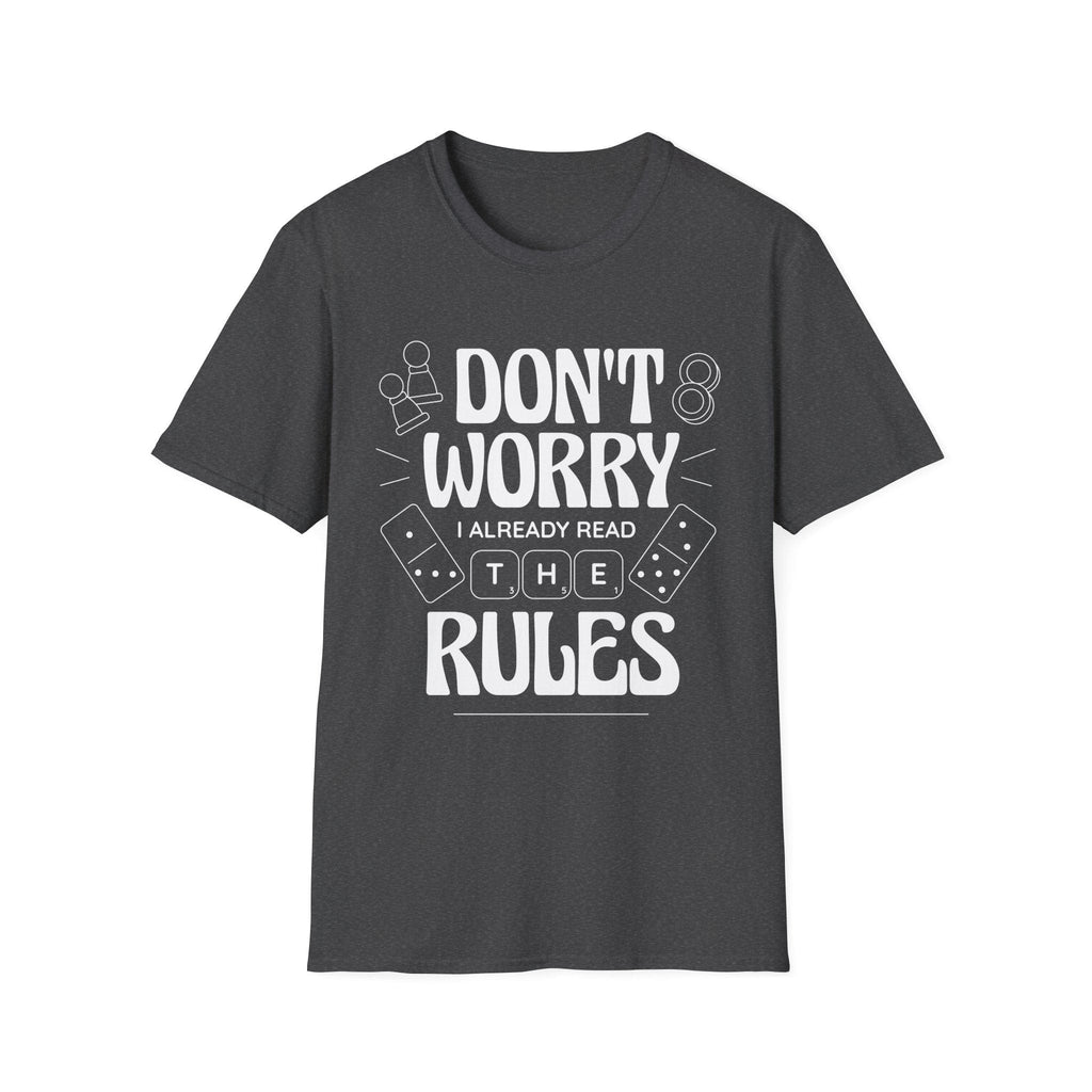 Get your game on with this unique Board Games T-shirt, perfect for any true player! Show off your knowledge and love for board games with the witty phrase "Don't Worry I Read The Rules". This playful tee will surely make you stand out at your next game night.