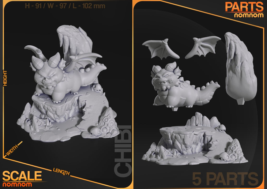 Chibi Themberchaud, the iconic red dragon from Dungeons & Dragons, reimagined in an adorable chibi form. This 3D printable miniature features detailed sculpting with a rocky base and detachable wings, perfect for fans of whimsical fantasy themes and tabletop RPGs. Ideal for D&D and Pathfinder campaigns.