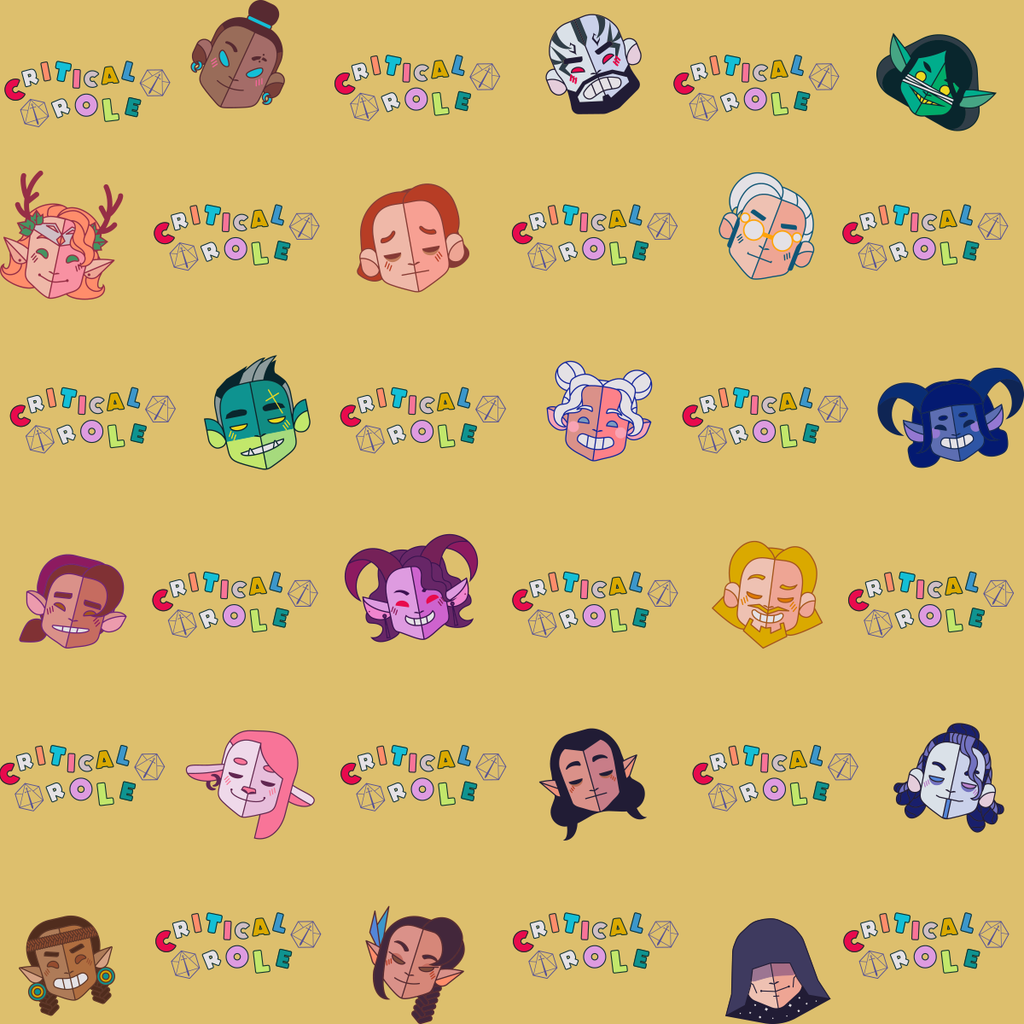 Add some adorable chaos to your wardrobe with this Critical Role & Chaos Crew scrunchie set! Three scrunchies feature a stitched Critical Role logo and adorable chibi illustrations of the Chaos Crew themselves—Jester (purple), Nott (green), and Beau (blue)—while the fourth Critical Role scrunchie (yellow) displays chibi illustrations of members of Vox Machina and the Mighty Nein.