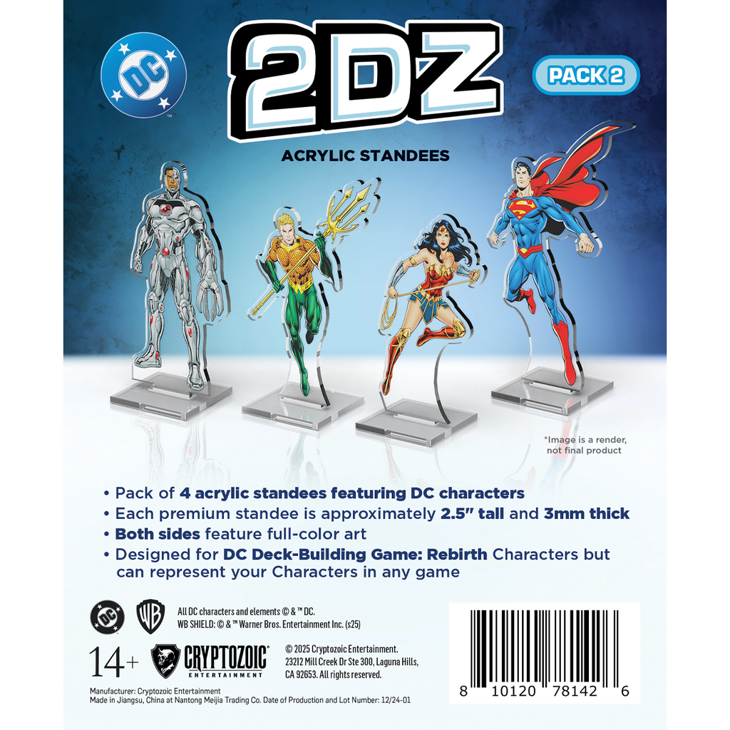 - Pack 2: 4 Acrylic Standees and Bases — Superman, Wonder Woman, Aquaman, Cyborg