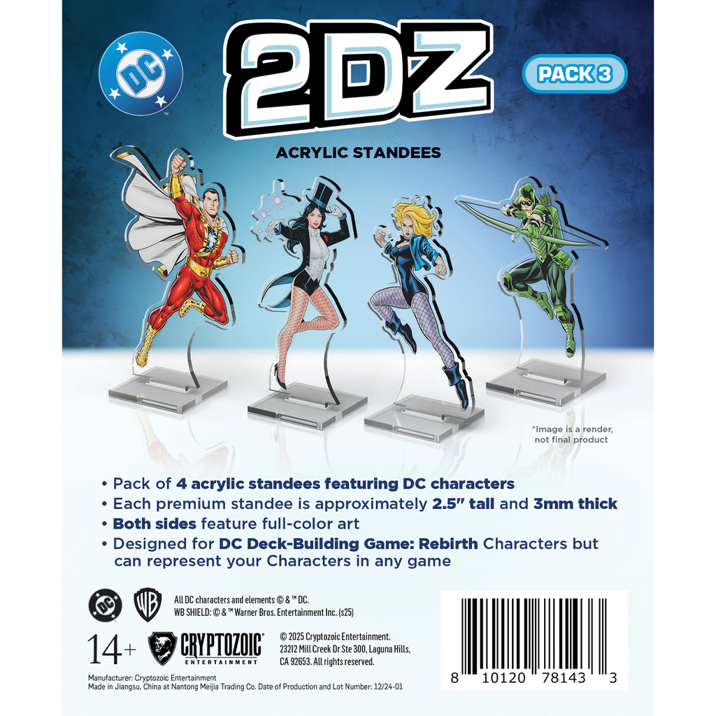 - Pack 3: 4 Acrylic Standees and Bases — Shazam!, Green Arrow, Black Canary, Zatanna