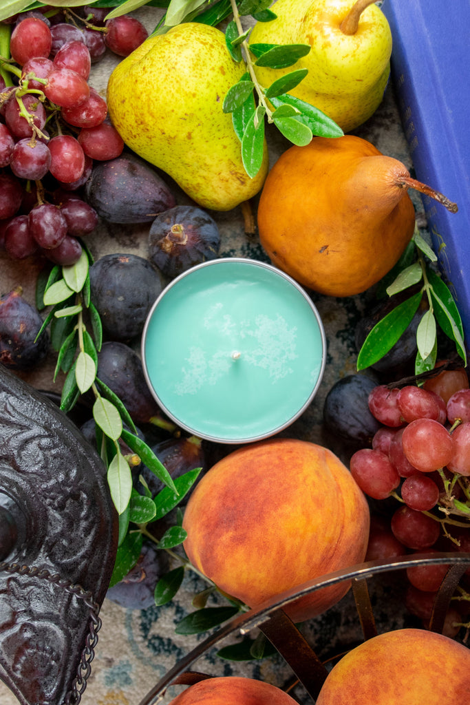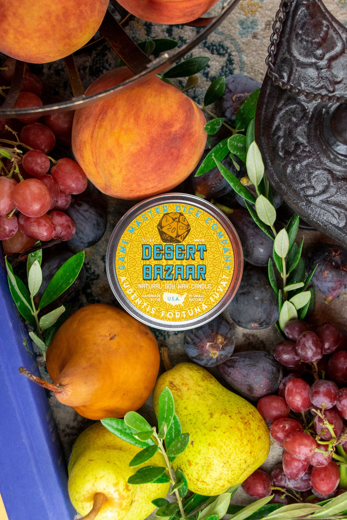 Transport yourself to a bustling market of caravan traders, where ripe figs and desert flowers are laid out in the open air.