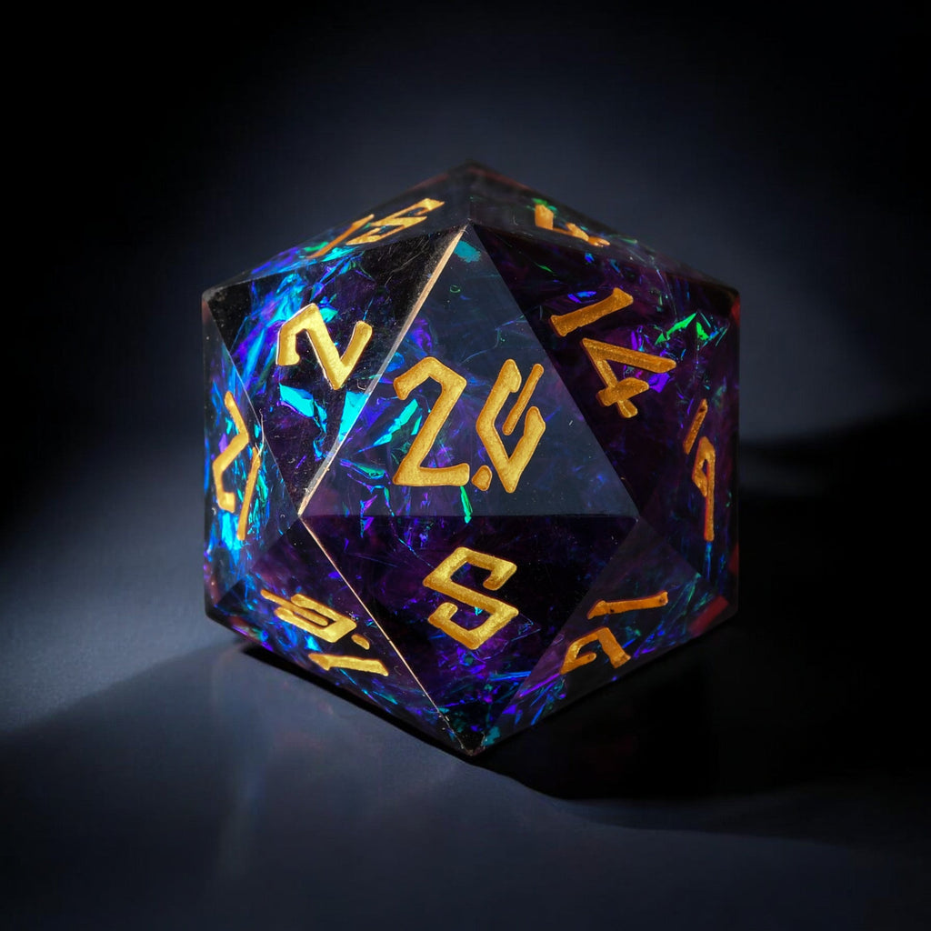 Hand-crafted from beginning to end, our sharp-edged resin dice feature gorgeously hand-painted numbers. These dice are ideal for any tabletop RPG game and are sure to impress at your upcoming session!