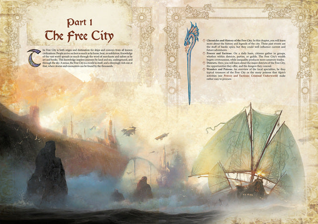 Free City - The largest city in the world and a thriving melting pot, the Free City is the perfect place for urban adventures. Notables, merchants, scholars and criminals coexist and strive to fulfill their ambitions.
