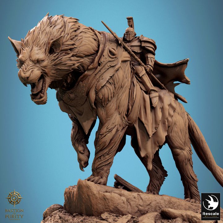 The Feline Warden of the Prime prowls with regal fury, its snarling maw and twin tails ready to strike. This beast mount includes wild, saddled, and fully mounted versions with knight rider. Perfect for Dungeons & Dragons, Pathfinder, or any fantasy tabletop TTRPG.