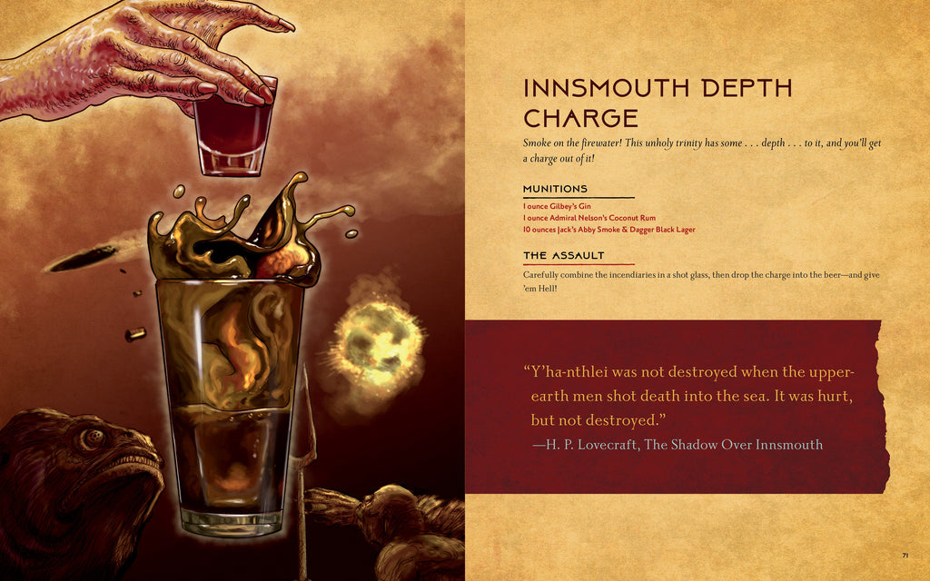 It's ironic, isn't it? Lovecraft was a writer who never saw his works published in book form during his lifetime. He was also a teetotaler who never touched alcohol. And here we are with a newly published book of Lovecraftian cocktails. After the success of The Necronomnomnom, a Lovecraftian cookbook, Mike Slater has followed is up with this compendium of Lovecraftian libations.