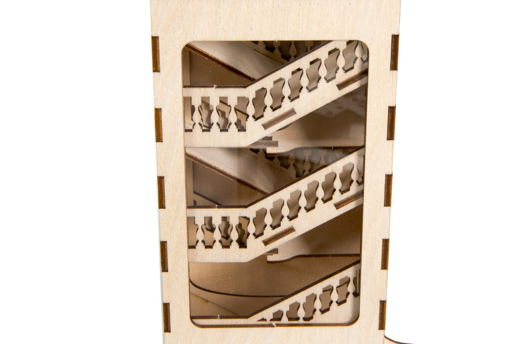 The Stair design which features elegant railing cutouts allowing your dice to make a grand entrance.