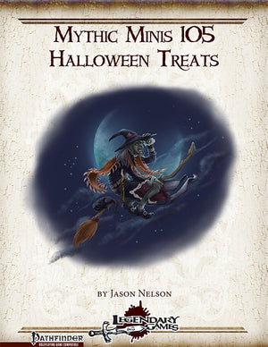 Halloween Treats is the latest Mythic Mini devoted to exploring the terrible tricks that desperate heroes and vile villains alike might unleash in a horror-themed campaign using the new Pathfinder Roleplaying Game Horror Adventures rulebook. This PDF, though, is more about treats than tricks, so while it does provide the new ghost rider and headless horseman mythic path abilities, it is more about whimsically wicked magic items for your heroes to find on this haunted holiday and use all year long, including the ghostly gossamer, goblin mask, witch's broom, and the legendary sack of gluttony!