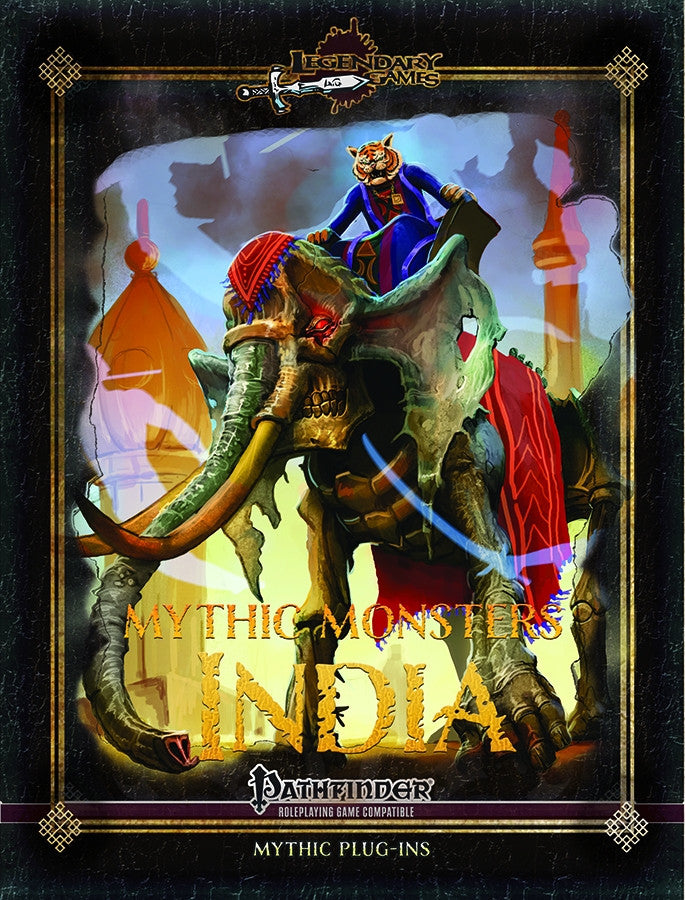 Mythic Monsters: India brings you an incredible collection of insidious enemies and allies from the robust and marvelous legends and lore of India, from mountaintop monasteries and river shrines to denizens of the deepest jungle and the blasted badlands, ranging from CR 3 to 25. Some natives of India are benevolent spirits, like the wise and regal guardian naga or the brave and fierce garuda bird-folk, or are creatures of the wild who prefer their privacy and are dangerous only if provoked by intruders, like the wily water naga and the headless kabandha cyclops. The legendarium of the subcontinent is replete with dangerous and deadly spirits, of course, most famously the rakshasa, ranging from the tiny and treacherous raktavarna to the mighty maharaja, but also the elusive asuras, from the cunning triparasura masquerading as lucky idols to the three-faced upasunda, the beatific masters of deadly perfection, and the savage and serpentine aghasura. These enemies may engage in physical brutality and slaughter, but some prefer secretive and subtle seduction and sedition, like the sinister spirit naga and the ghostly bhuta whose very touch is corruption. As if a dozen existing monsters were not enough, the brand-new pisacha is a shapechanging spirit of anger and anguish, hungering for the suffering of mortals but placated by feasts in its honor. In addition to the featured creatures, we bring you special rules for creating mandalas to ward off the spirits, magical offerings to appease them, and a simple system for luring your monstrous enemies to the table with a feast of food! Grab this 30-page Pathfinder supplement and Make Your Game Legendary!