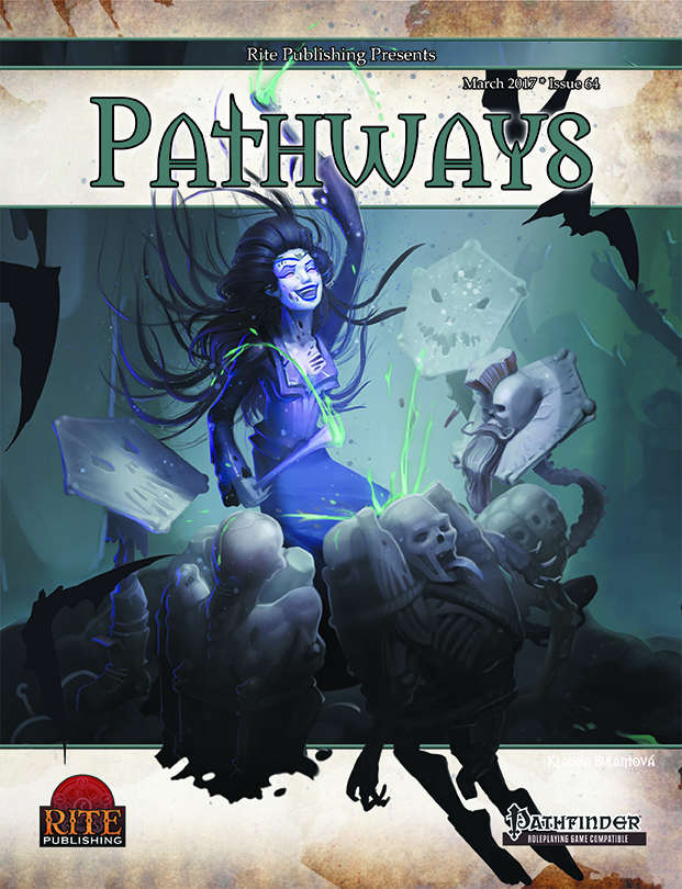 Rite Publishing brings you Pathways, a free 'zine packed with plenty of Open Game Content for you to take to the table. You'll find articles by Lj Stephens (her first debut!), Dave Paul(101 Plains Spells), Anthony Jennings, Owen K.C. Stephens(Rogue Genius Games), and Mike Welham(2012 RPG Superstar). You will also find the continuation of a Path Less Traveled by Jacob E. Blackmon and an interview with Ilya Bossov discussing the GateKeepers Kickstarter!