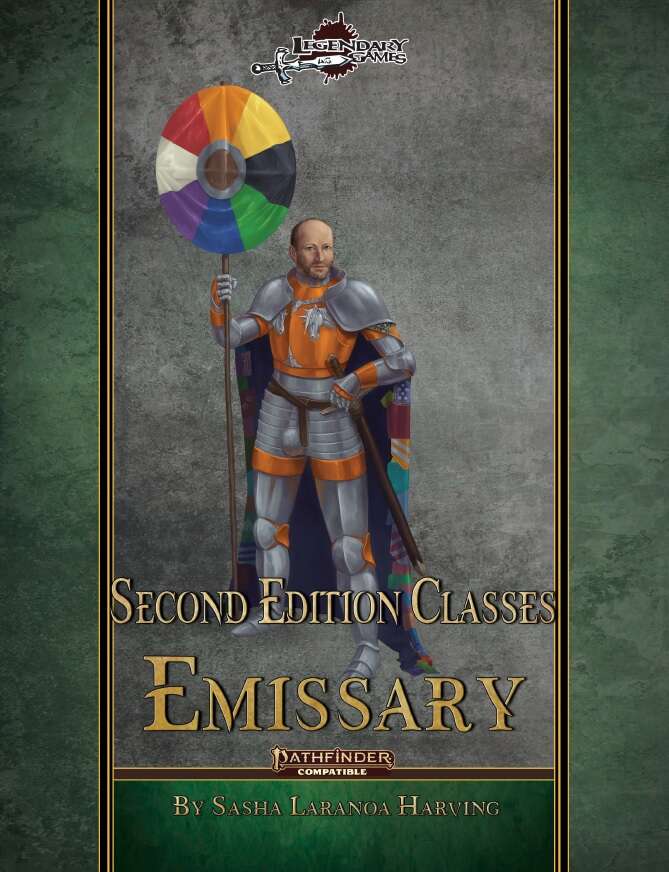 The emissary is an all-new class for Pathfinder Second Edition, melding the magic of arcane empires with the supportive skill of a trained ambassador. With five imperial origins from the knightly abjurant crusade with their bulky tornswords and defensive acumen to the fiery sands of flame with their regal war scepters and burning light, the emissary can master the social graces like no other. With more than 40 class feats from levels 1-20 like Catspaw Assault and Animal Sidekick, no two emissaries are the same! Whether braggadocious or cunning, a merciless intimidator or a gregarious gadabout, any emissary can brand their foes with their empire's mark, setting them up so their allies can lay them low. Plus, find the emissary multiclass archetype to splash some imperial graces into other classes, and several new mundane weapons used by those far-off empires. Grab this incredible new 26-page class book by veteran Pathfinder 2E author Sasha Laranoa Harving today and Make Your Game Legendary!