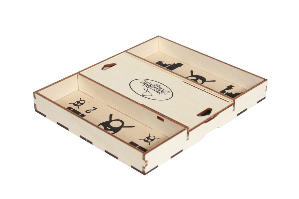 This organizer can be configured in a single box with significant lid lift, or can be split between the original Spirit Island box and the Jagged Earth expansion box, with no lift on either. Or you can upgrade your game further with the crate upgrade.