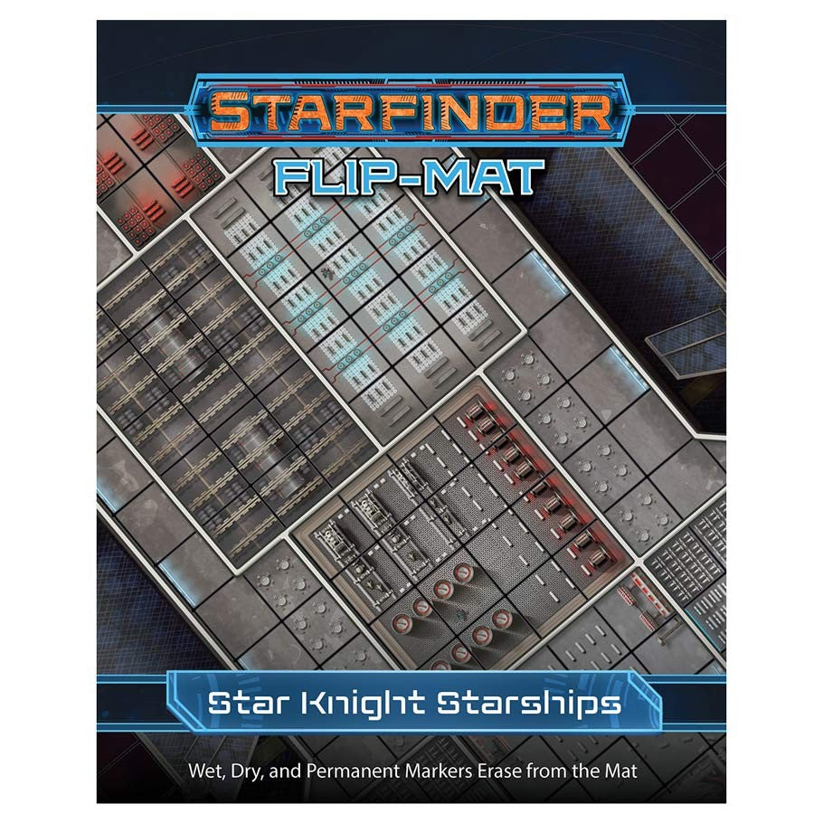 The depths of space can be a dangerous place, but those who have upheld the traditions of knighthood over the millennia patrol the galaxy to protect the everyday citizens… sometimes even from themselves. This double-sided Starfinder Flip-Mat features the interior of a guard ship of the Knights of Golarion—a group dedicated to promoting justice and righteousness in the name of that lost planet—on one side and the deck plans for a warship of the Hellknights—a ruthless organization who enforce the law at any cost—on the other. With Starfinder Flip-Mat: Star Knight Starships, you’ll be ready for the next encounter with these champions of space!