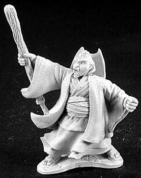 This Exalted series figure by Reaper Miniatures is entitled "The Slug, Wood Aspect Dragon Blood", #61026. "The Slug, Wood Aspect Dragon Blood" was sculpted by Bobby Jackson and released on October 13, 2004. This Exalted miniature shows a male adult holding a staff in his right hand. This Reaper product is not painted and may require some assembly. When completed, this miniature will consist of one Exalted model.