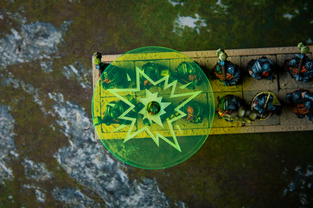 Artillery and magic define many decisive moments in Warhammer: The Old World. When your cannon fires into enemy ranks or your wizard unleashes a fireball, these templates determine exactly which models suffer the effects. The clear acrylic lets both players see precisely which miniatures are under the template, eliminating disputes and ensuring fair gameplay.