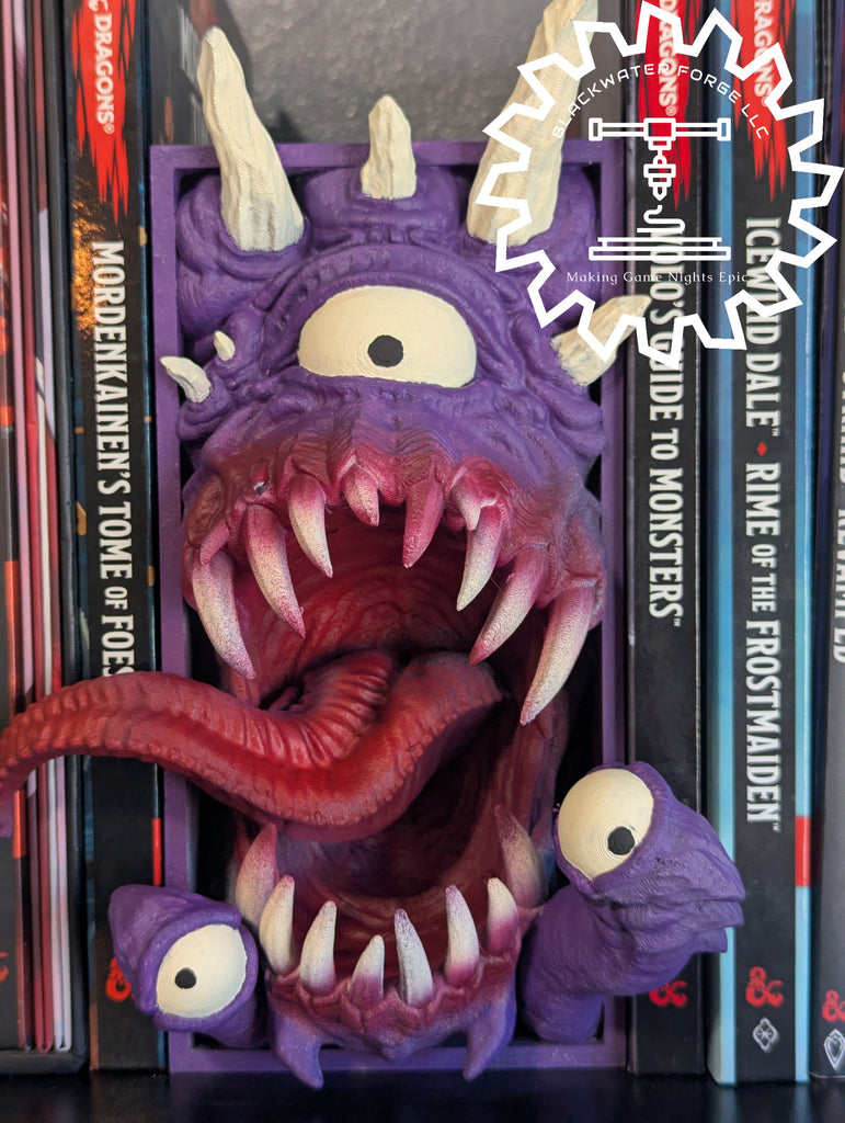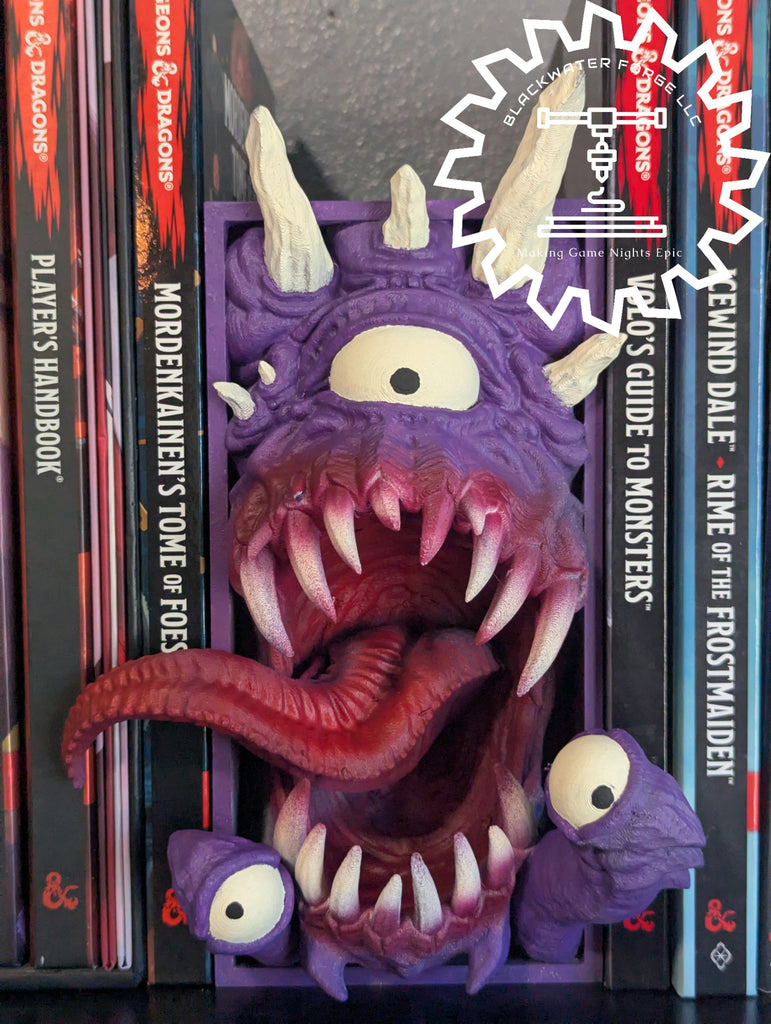Enter a world of madness and mystery with the Beholder 3D Printed Book Nook, where chaos and power are ever-present. This stunning piece features the terrifying Beholder, with its many eyes scanning for intruders. A perfect addition to your shelf, this 3D printed book nook brings a sense of tension and wonder to any fantasy loverās collection.