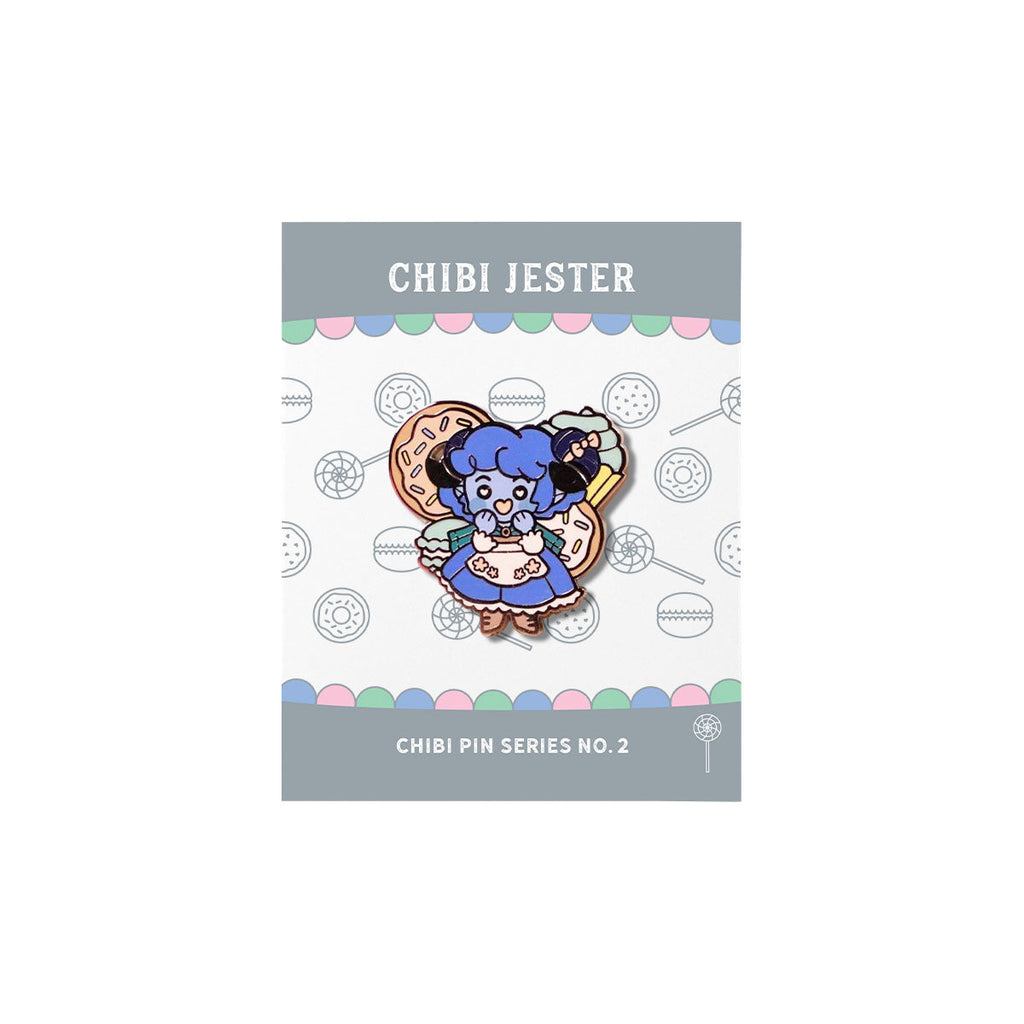 Satisfy your sweet tooth with our very shiny, donuty, sprinkly, enamely, chibi Jester Lavorre pin designed by Critter Jenny Park (@asunnydisposish).