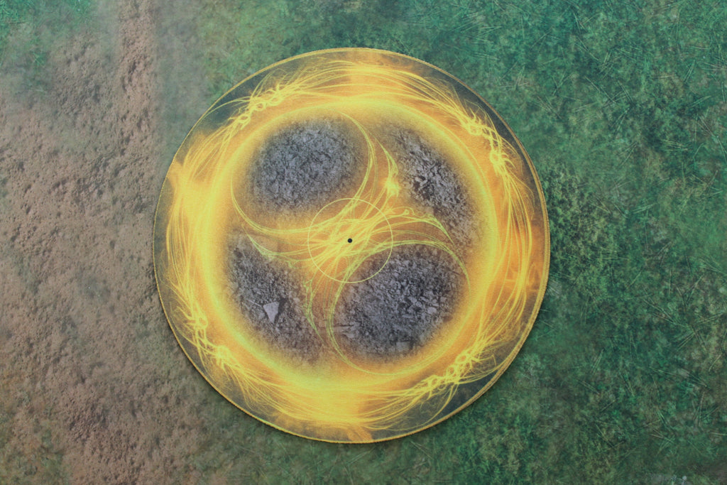 Design: One side shows a yellow light energy glyph while the other side shows a ring of crackling lightning, perfect for energy-themed armies and scenarios.