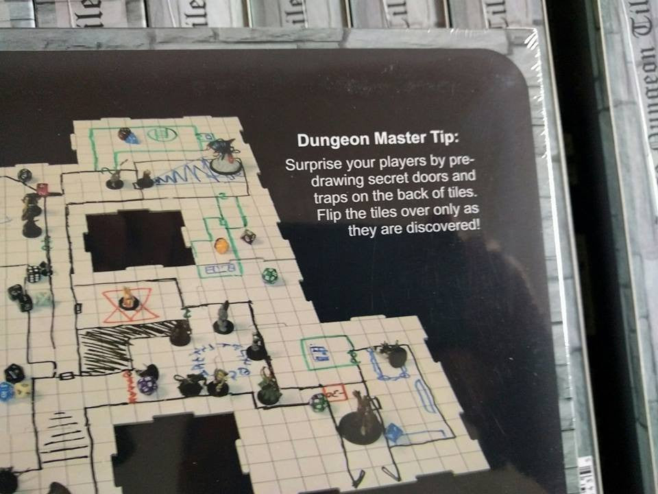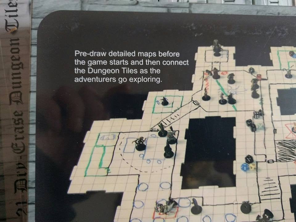 The interlocking tile modularity allows the Dungeon Master to draw many details of an area at his seat and then simply hand the tile to the nearest player to connect.