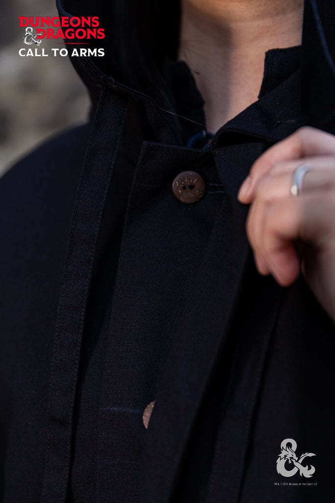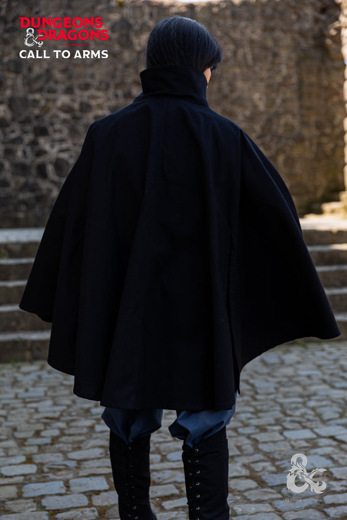 Add an air of mystery to your character concepts with the D&D Rogue Cape. Soft and lightweight, this cape provides warmth and its shorter cut prevents it from getting in the way of midnight heists. The cape features a turn-over collar with drawstrings and a hidden button placket. The slit hem at the front and back provide extra room to move, while the longer hem at the center back adds a touch of style.