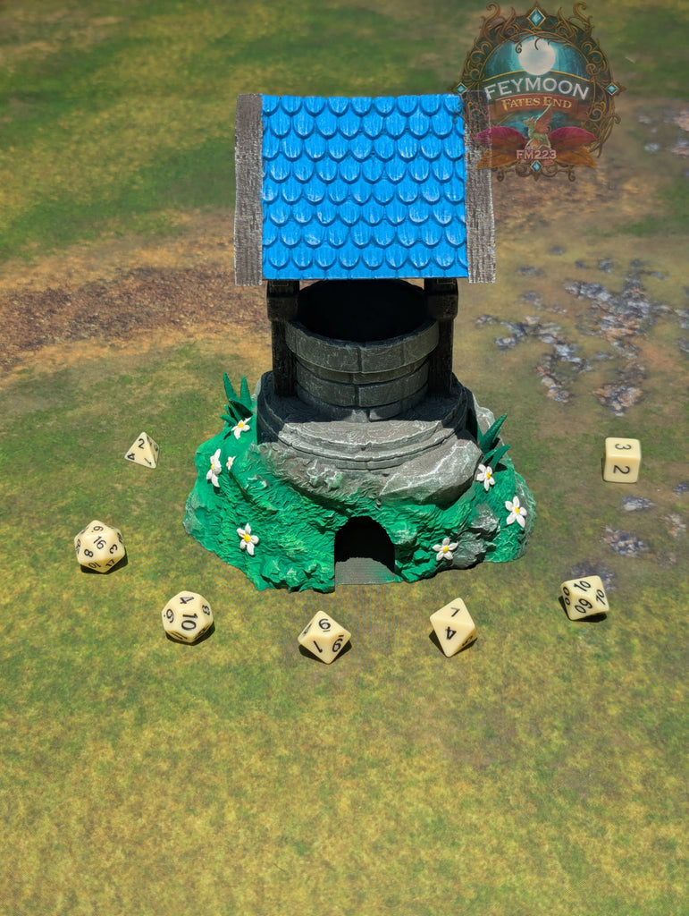 Enchanted Wishing Well 3D Printed Dice Tower by Kim Bolt - Fate's End Fey Moon Collection - Make a Wish in this Ancient Magical Water Well!