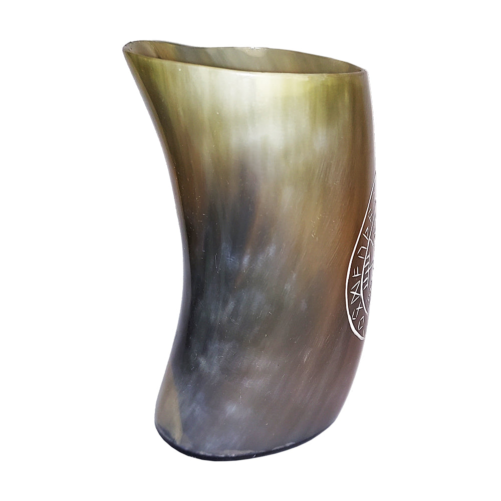 Handcrafted Natural Buffalo Horn Mug - Vegvísir